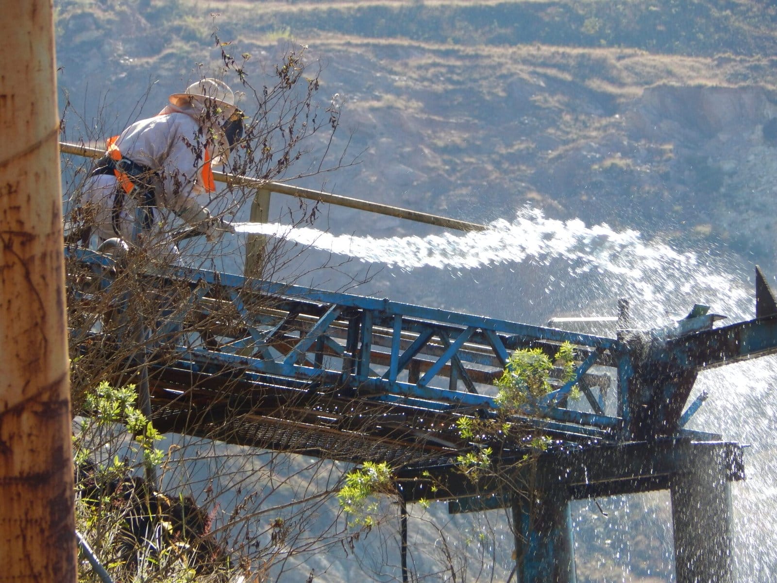 Pois bem, assim eu fiz. Segui todas as etapas do protocolo de resgate e fui verificar a colméia que estava instalada no topo de um poste de ferro, em uma mina abandonada.